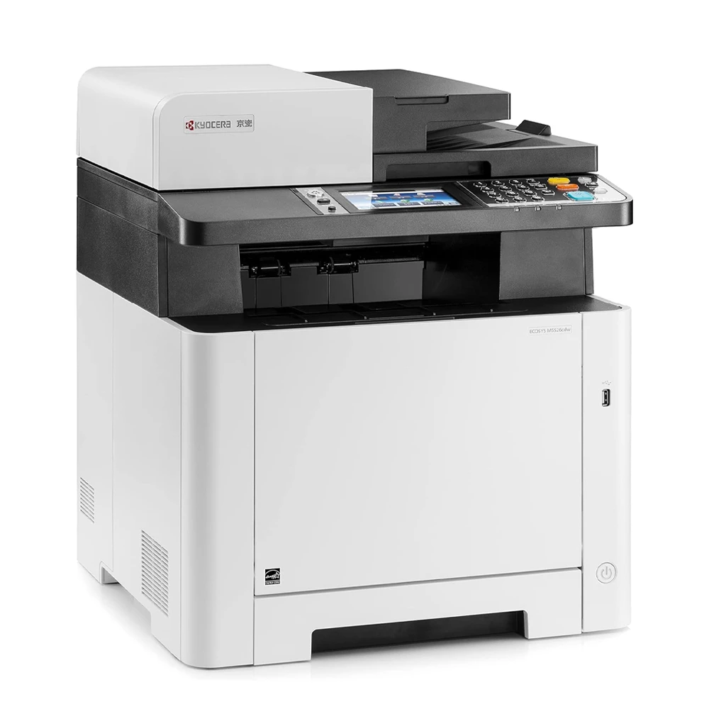 The Kyocera ECOSYS M5526cdw is a compact yet powerful A4 color laser multifunction printer built for dynamic workspaces and small to medium-sized businesses. It offers high-speed printing up to 26 pages per minute in both color and monochrome. With features like automatic duplexing, WiFi connectivity, and a user-friendly 4.3-inch touch display, this printer ensures productivity without compromising space. Mobile print support, robust security protocols, and Kyocera’s long-life components make it an ideal choice for cost-efficient and eco-friendly operations.